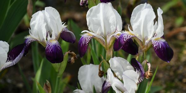 Keep your Iris beds clean and free of weeds and debris, allowing the tops of the rhizomes to bask in the sun. Bloom stems should be cut off close to the ground after blooming. Healthy green leaves should be left undisturbed, but diseased or brown leaves should be removed